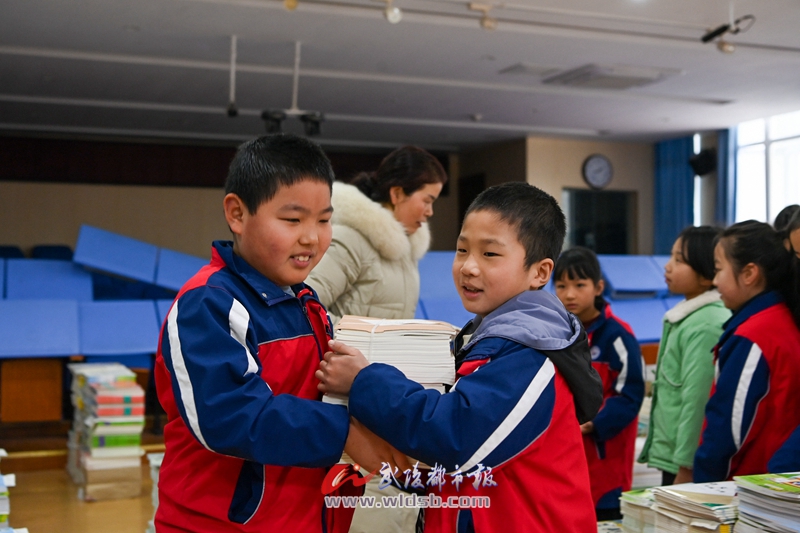 2月16日,在酉陽自治縣實驗小學,學生們在領取新學期課本。