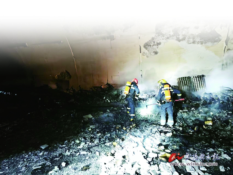 8時50分許,經(jīng)過緊張撲救,貨車明火基本熄滅,為防止火勢死灰復(fù)燃,救援人員對現(xiàn)場貨物進(jìn)行清理。