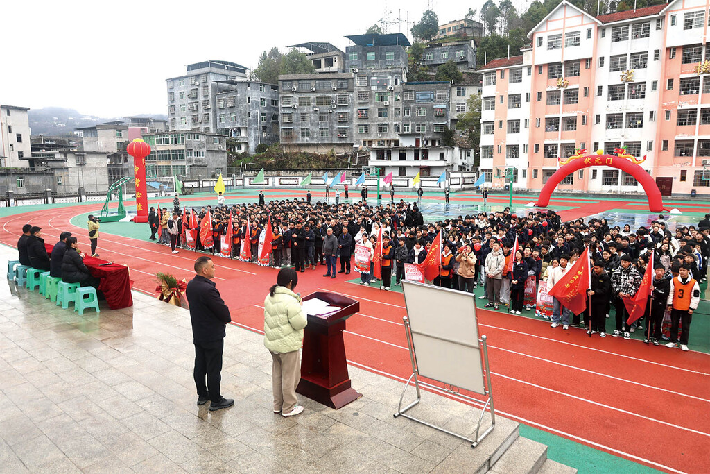 3月4日,黔江區人民中學體育場熱鬧非凡。當天,該校初三年級的全體師生齊聚一堂,在這里舉行了極具意義的中考百日誓師大會。全年級14個班級的師生在這里莊嚴宣誓,共同吹響青春奮斗的沖刺號角。