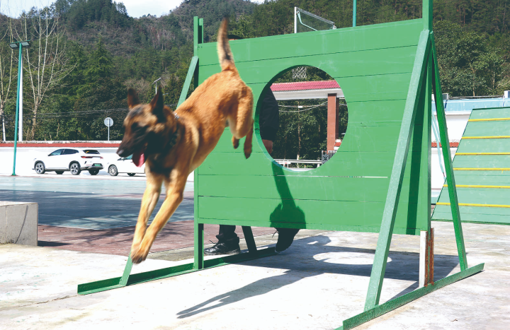 “坐下,臥倒!”“黑虎,跑!”近日,距離黔江城區(qū)十余公里,在黔江區(qū)公安局交巡警支隊(duì)公巡二大隊(duì)里的警犬訓(xùn)練基地里,不時(shí)傳來警犬訓(xùn)導(dǎo)員的指令。
