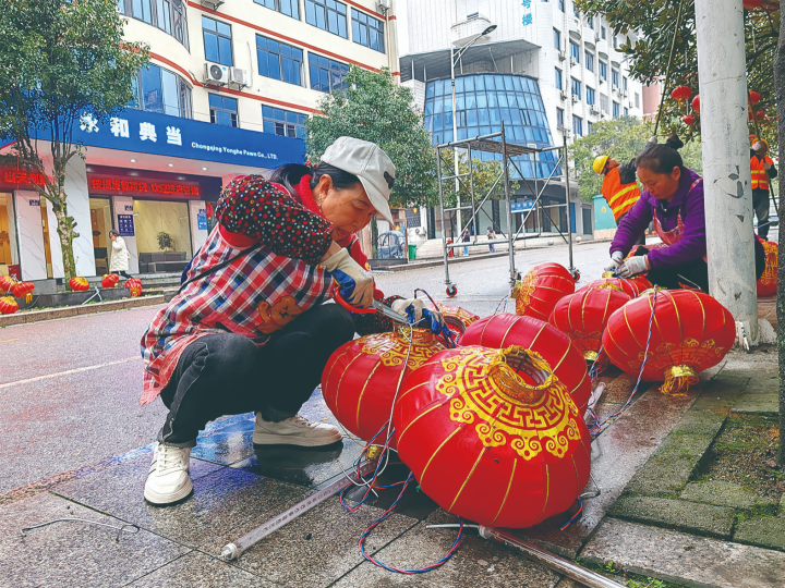 “通過循環使用燈籠等燈飾掛件,減少了資源浪費。”黔江區城市管理局市政工程管理中心主任李雪梅告訴記者,“我們從2023年至2025年連續三年對上一年迎春燈飾進行保護性拆除,精心采用塑料密封袋、紙箱等低成本措施妥善保管、存放,三年來,掛件平均利舊率達到80%以上,利舊價值約150萬元,固定燈飾價值約60萬元,利舊使用總價值210余萬元,進一步節約成本,實現綠色照明。”