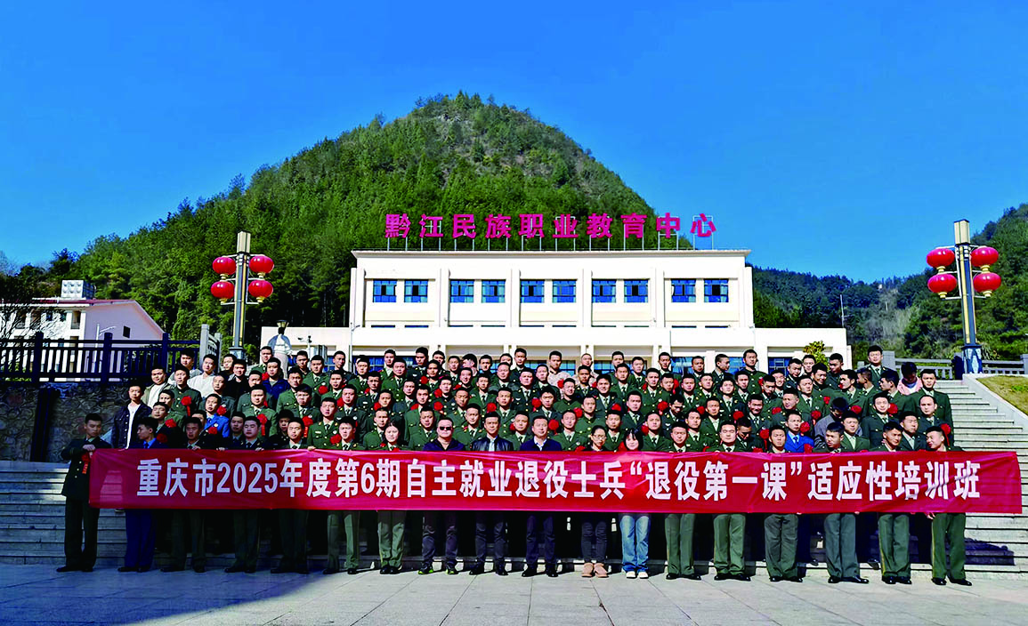 3月25日,重慶市2025年度第6期(黔江、彭水、酉陽、秀山)自主就業(yè)退役士兵“退役第一課”適應(yīng)性培訓(xùn)班開班儀式在黔江區(qū)民族職業(yè)教育中心舉行。來自黔江、彭水、酉陽、秀山等區(qū)縣自主就業(yè)退役士兵共120余人參加。