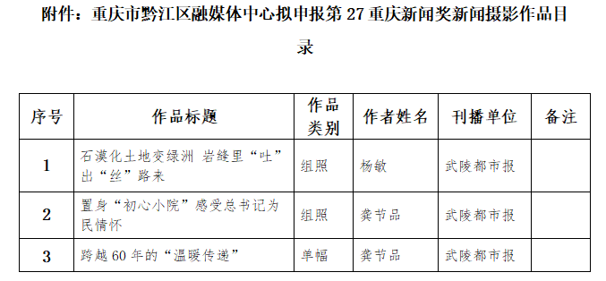附件:重慶市黔江區融媒體中心擬申報第27重慶新聞獎新聞攝影作品目錄