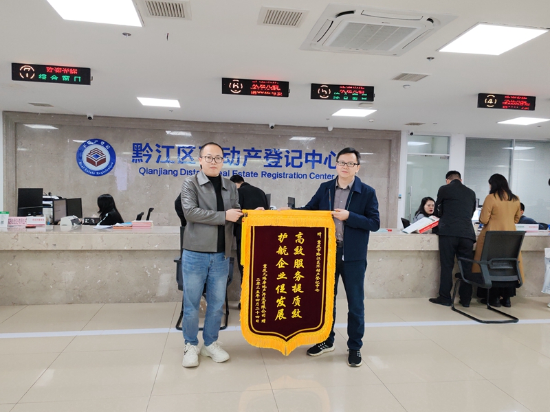本報(bào)訊(記者 田丹 文/圖)4月24日一大早,重慶凡瑞房地產(chǎn)開發(fā)有限公司向黔江區(qū)不動(dòng)產(chǎn)登記中心贈(zèng)送了寫有“高效服務(wù)提質(zhì)效,護(hù)航企業(yè)促發(fā)展”的錦旗,點(diǎn)贊“交房即交證”這一便民惠企之舉(如圖),表達(dá)對(duì)該中心優(yōu)質(zhì)高效、服務(wù)周到的感謝。