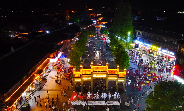 “五一”假期夜間,濯水古鎮推出非遺體驗、民族歌舞表演、篝火晚會等文旅深度融合的特色活動,引來眾多游客前往觀光、游玩。