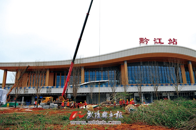 本報訊(記者 羅躍 文/圖)近日,在渝湘高鐵黔江站的站前廣場施工現場,一派“熱火朝天”的景象。記者看到,項目現場正在實施地表鋪裝、植被綠化、交通設施建設等工作。目前,該項目正按照目標任務和時間節點,倒排工期有序推進建設。