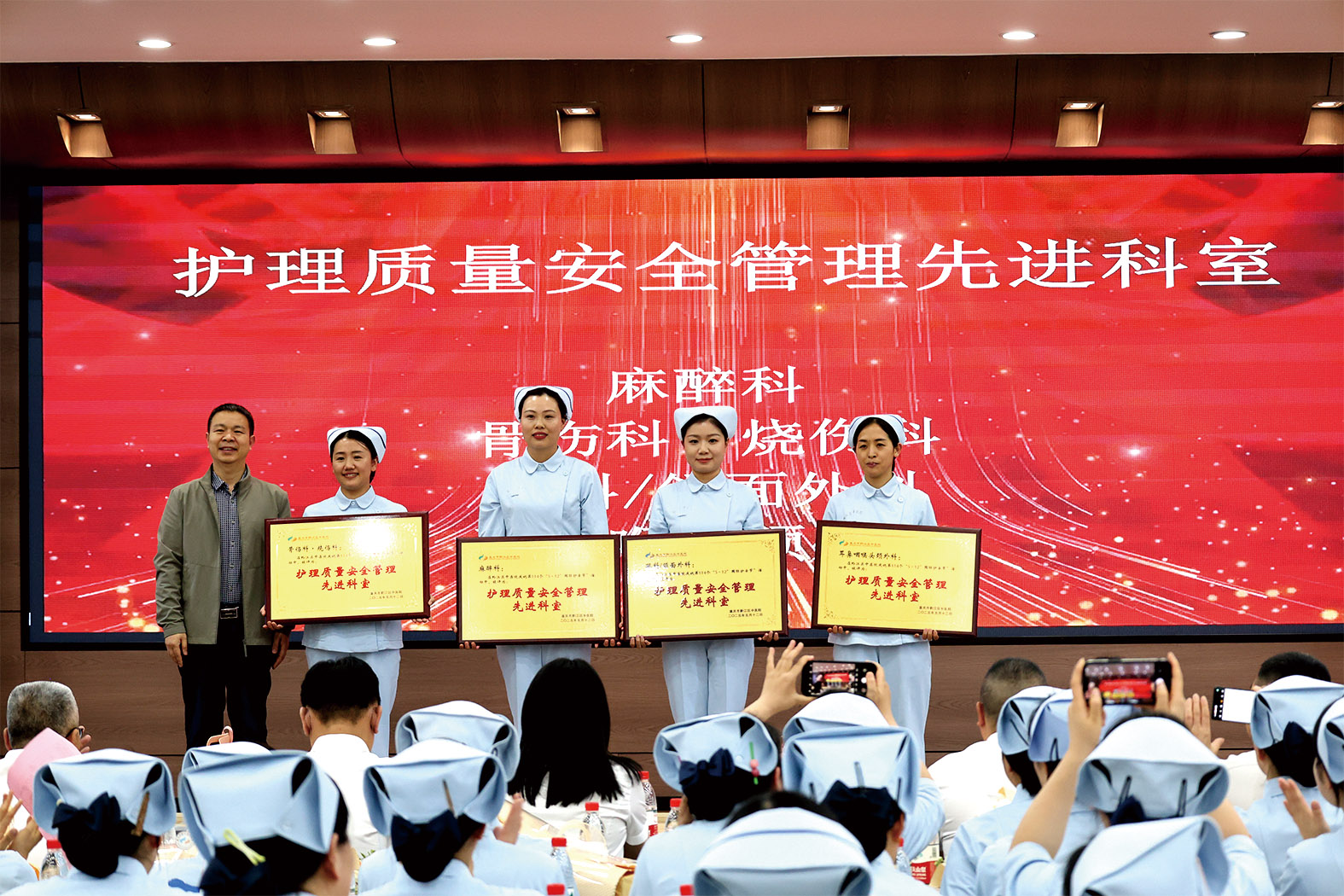 表彰環節,醫院對“敘事護理優秀典型案例”“先進個人”“先進科室”等進行了表彰,感謝她們在崗位上的辛勤付出,感謝她們對患者的用心用情,希望她們繼續創造優異成績,發揮榜樣示范作用,為醫院護理工作的高質量發展再創新輝煌。獲獎代表表示,將繼續立足崗位,不斷提升服務質量,為助推醫院高質量發展貢獻力量。