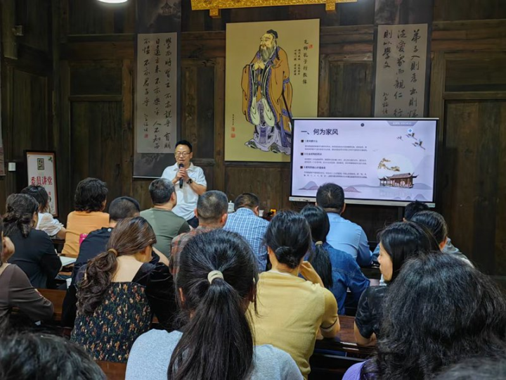 在古意盎然的三臺(tái)書(shū)院,黔江區(qū)圖書(shū)館研究館員陳彤化身文化引路人,為大家?guī)?lái)一場(chǎng)別開(kāi)生面的《黔江歷代家風(fēng)故事》講座(如圖)。他以妙趣橫生的講述,輔以大量珍貴的歷史史料,圍繞“和、孝、勤、儉、仁、義、禮、智、信”九字家風(fēng)核心價(jià)值體系,深入挖掘黔江歷代家風(fēng)故事。