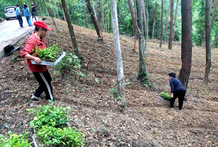 村民在生態林栽培珠蘭幼苗