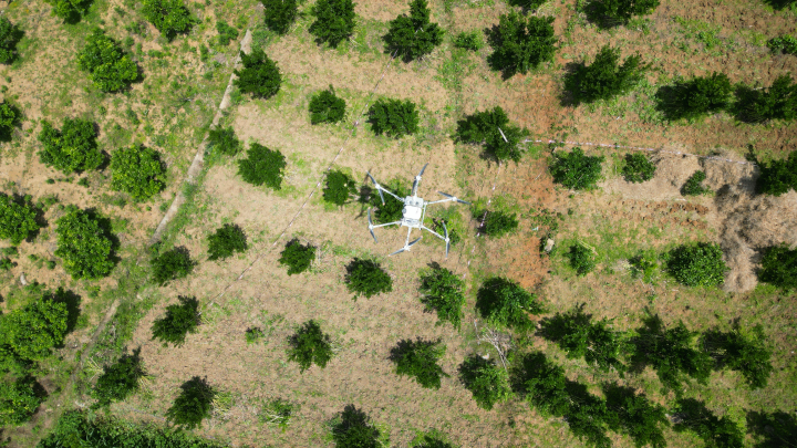 當日隨行的專家表示,我們選擇了適宜的藥劑,通過精準劃定“飛防”區域,控制施用范圍,既滿足柑橘的病蟲害防治需求,也不會影響到家蠶生長。經過測算,每架植保無人機一天的“飛防”面積,可以達到300至400畝。對于不適宜“飛防”的地塊,我們會安排人工進行綠色防控。