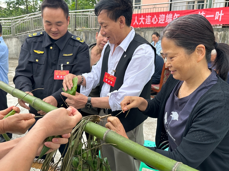 活動現(xiàn)場,鎮(zhèn)人大代表們親切問候老人,詳細(xì)了解他們的生活狀況,并送上節(jié)日慰問。隨后,大家圍坐一堂包粽子、話家常,老人們手把手教年輕人裹粽葉、纏棉線,歡聲笑語中洋溢著濃濃的節(jié)日氛圍。