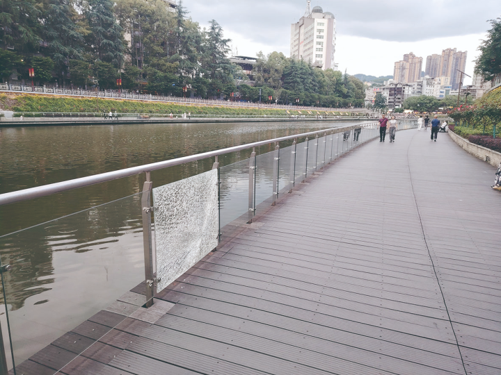 三岔河區域作為城市客廳,是市民茶余飯后休閑娛樂的重要場所。每到傍晚或周末,這里人流密集,老人散步、孩童嬉戲。然而,破損的玻璃欄桿不僅影響了城市客廳的美觀形象,更給市民的人身安全帶來了嚴重威脅。“每次帶孩子來這邊玩,看到這些損壞的玻璃欄桿都感到十分擔憂。”一位帶孩子游玩的家長說道。