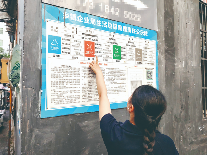 為精準(zhǔn)摸清問題底數(shù),黔江區(qū)垃圾分類工作人員開啟“拉網(wǎng)式”排查模式,對全區(qū)機(jī)關(guān)單位、街道社區(qū)及居民小區(qū)等區(qū)域的垃圾分類公示欄來了一次全面“體檢”。工作人員仔細(xì)檢查公示牌是否存在缺失、破損情況,內(nèi)容是否存在過時(shí)、模糊等問題,并逐一登記,形成詳細(xì)問題清單,確保“不留死角、不漏一處”。