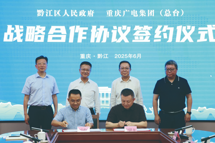 本報訊(記者 蔡肖霞 文/圖)6月25日下午,黔江區與重慶廣電集團(總臺)簽訂戰略合作協議。區委書記羅成,重慶廣電集團(總臺)黨委書記、臺長、總編輯李鵬出席并講話。重慶廣電集團(總臺)黨委副書記,第一眼TV黨委書記、總編輯張慶崗,重慶廣電集團(總臺)黨委委員、副總編輯,城市TV黨委書記、總編輯余季波,區領導陳林、周曉東參加。