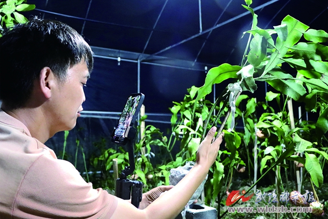 晚上8時許,基地負責人楊燕已在培育曇花的大棚里,架起腳架、放置好手機開始對曇花盛開始末進行抖音直播,很多粉絲朋友也在目不轉睛地盯著這一“驚喜”時刻。