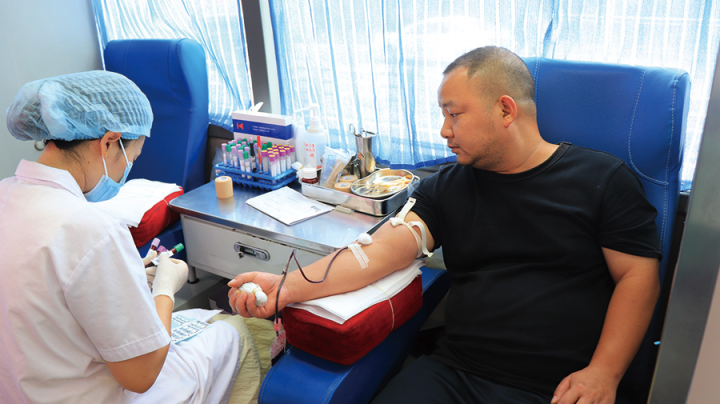 上午9時,獻(xiàn)血活動在醫(yī)院外正式啟動。在血站醫(yī)護(hù)人員的引導(dǎo)下,大家分批登上采血車,有序完成測量體溫、登記、量血壓、血液檢測、手部消毒、采血、留觀等流程,并認(rèn)真聽取醫(yī)護(hù)人員講解獻(xiàn)血過程中應(yīng)該注意的事項(xiàng)。當(dāng)溫?zé)岬难壕従徚魅雰ρ粓鰺o聲的生命接力悄然啟程。