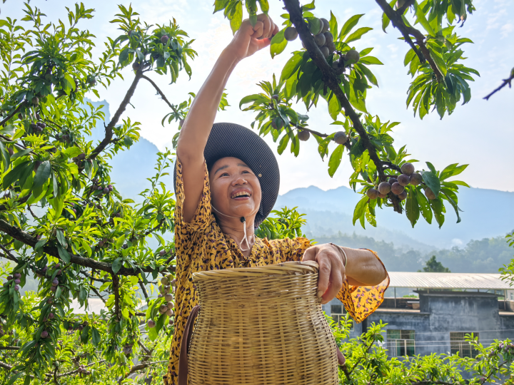 “今年我家的李子和去年差不多,可以賣7000—8000元。早上摘,下午就拿去賣,每天可以賣100斤左右,雖然也辛苦但還是覺得有奔頭。”中塘社區居民鐘春蓮說。