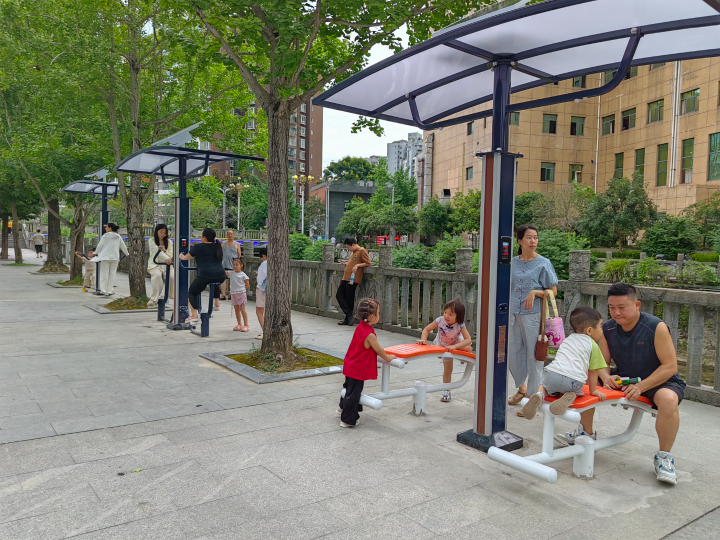 據(jù)了解,該健身區(qū)于今年7月啟動(dòng)建設(shè),8月初正式投入使用。所有器材均采用太陽(yáng)能供電,配備LED屏與語(yǔ)音系統(tǒng),可實(shí)時(shí)顯示運(yùn)動(dòng)頻率、熱量消耗等數(shù)據(jù),并通過(guò)二維碼鏈接提供個(gè)性化健康建議,讓健身從“盲目練”轉(zhuǎn)向“精準(zhǔn)練”。