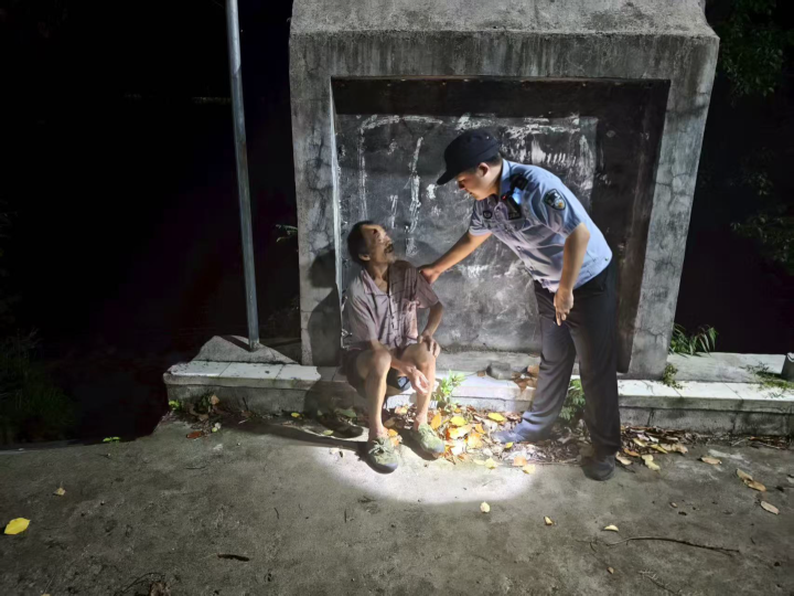 阿蓬江派出所民警劉杰告訴記者:“就在我們逐幀排查、梳理老人活動軌跡時,接到轄區村民打來的電話,稱在阿蓬江碼頭附近,發現有一名老人坐在路邊,可能就是走失的這名老人,我們立即趕往現場核實,最終在強降雨到來前,找到了老人(如上圖)。”