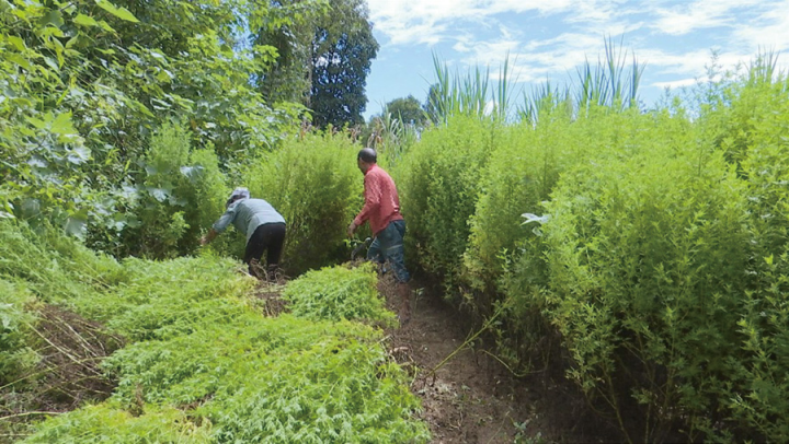 黑溪鎮蘇維村村民鄭欽銀介紹道:“今年我家種了50畝青蒿,現在已經收了一萬多斤,預計總產量能達到兩萬斤左右,收入大概有七八萬元,明年還打算再擴大種植規模?!毖哉Z中滿是掩不住的喜悅。