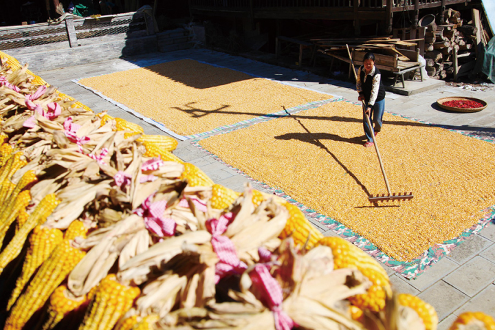 晾曬玉米和黃豆