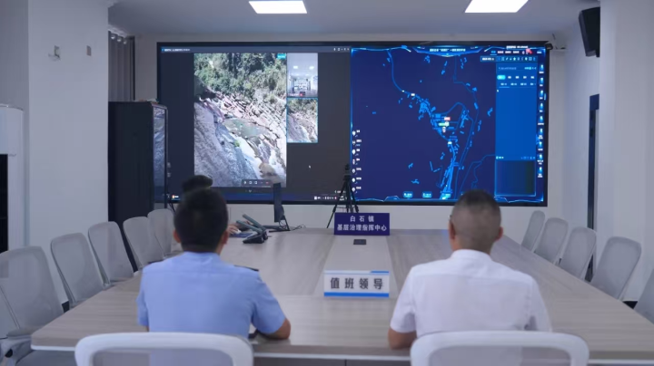 “請立即對他們進行勸阻,我們馬上聯系附近警力。”值班領導通過“141”基層治理指揮中心調度網格員說。此時,白石鎮的綜合指揮室里,大屏幕上的預警信息不時閃動。