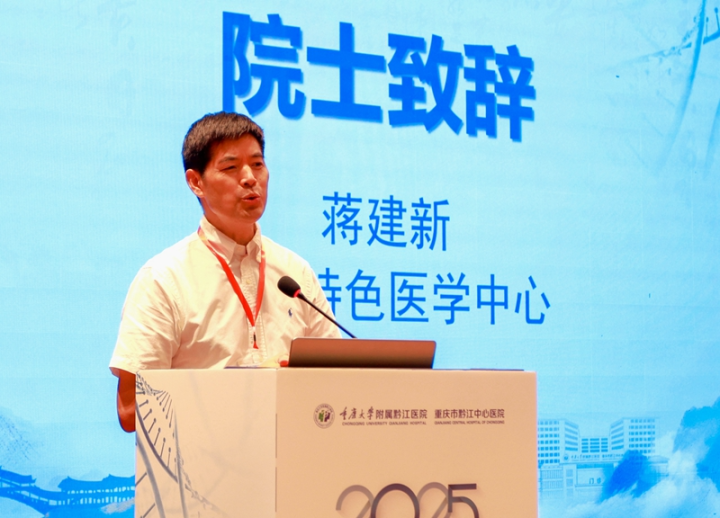 中國工程院院士、陸軍特色醫學中心戰創傷醫學中心主任蔣建新教授在致辭中充分肯定了黔江區在創傷醫學領域取得的快速發展。他回顧了重慶作為國家戰創傷醫學重要發祥地的輝煌歷程,指出重慶目前已建成國際規模最大、學科門類最全、學術影響力最廣的創傷醫學國家重點實驗室。面對新形勢新挑戰,他呼吁與會專家聚焦創傷醫學難點問題和關鍵技術,瞄準人工智能等前沿領域,加強學科交叉融合,推動創傷醫學事業創新發展。