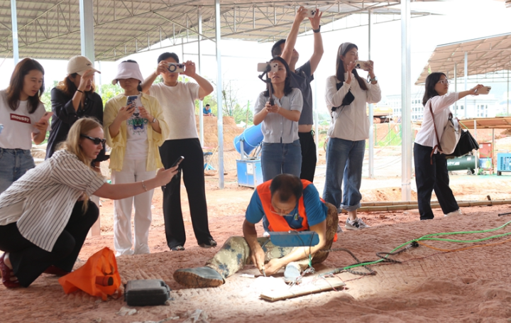 2025年4月21日上午,黔江恐龍學術價值研討會舉行。中國科學院院士、中國科學院古脊椎動物與古人類研究所所長、中國古生物化石保護基金會專家委員會主任徐星代表專家組發(fā)布黔江恐龍化石群保護與研究成果。徐星院士及相關古生物、文旅產(chǎn)業(yè)專家實地考察并論證認為,黔江恐龍化石呈現(xiàn)了特有的屬種,代表西南地區(qū)獨特的生物群面貌,有望命名多個新的恐龍屬種,建立新的恐龍動物群,兼具地層學、沉積學、古氣候?qū)W及古地理學等多學科研究潛力,具有區(qū)域和國際對比意義,對探討白堊紀恐龍與環(huán)境協(xié)同演化具有重要價值,達到了世界級地質(zhì)遺跡標準。