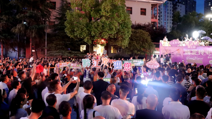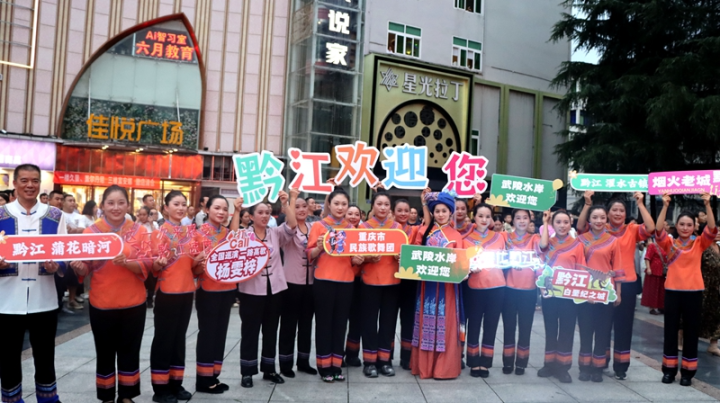 觀眾舉牌展示黔江景區