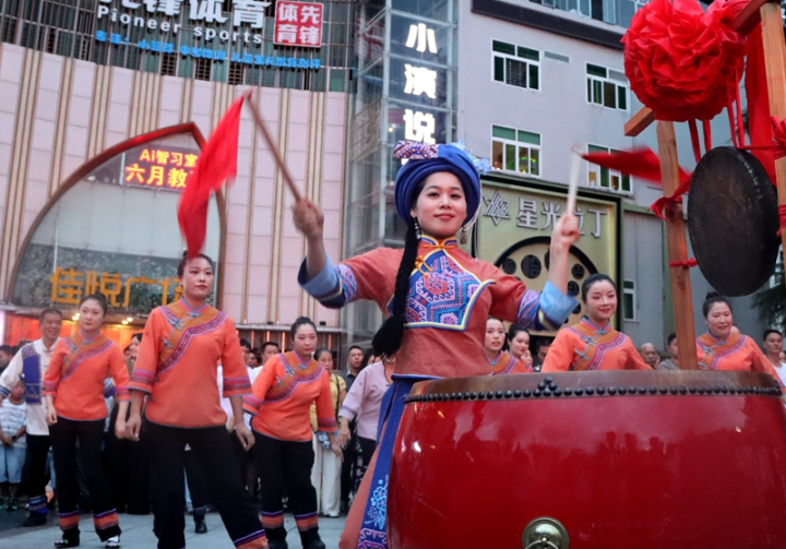 巡演中,楊雯梓與觀眾互動演唱的間歇,本地市民敲起“迎賓鑼鼓”、跳起“土家擺手舞”、端起“攔門酒”、歡迎“貴客進山來”。