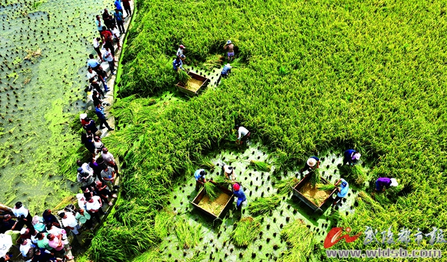 9月17日,在黔江區(qū)農(nóng)民豐收節(jié)現(xiàn)場(chǎng),村民正在參加傳統(tǒng)打谷接力賽(無(wú)人機(jī)照片)。當(dāng)天,黔江區(qū)在五里鎮(zhèn)胡家壩村舉辦慶祝農(nóng)民豐收節(jié)活動(dòng)。現(xiàn)場(chǎng)開(kāi)展了傳統(tǒng)打谷、稻田摸魚、挑糧、拔河等項(xiàng)目的比賽,以及豐收大集等系列活動(dòng),展現(xiàn)和美鄉(xiāng)村新面貌,展示農(nóng)民新風(fēng)采,活動(dòng)吸引了眾多村民和游客參加,共享豐收喜悅。(詳見(jiàn)04、05版)