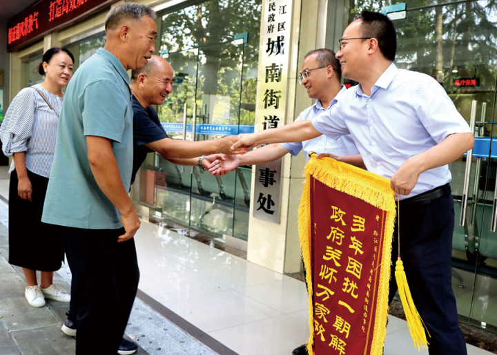 本報訊(記者 李詩素 文/圖)“街道開展的‘雙融行動’,讓困擾我們10多年的臭水溝徹底‘消失’了!”9月18日,黔江區(qū)城南街道黑山社區(qū)居民代表黃方群一行,將一面錦旗送到街道辦事處。錦旗上“多年困擾一朝解 政府關(guān)懷萬家歡”的金色大字,見證了街道通過“黨建+民生”雙融實(shí)踐交出的暖心答卷。