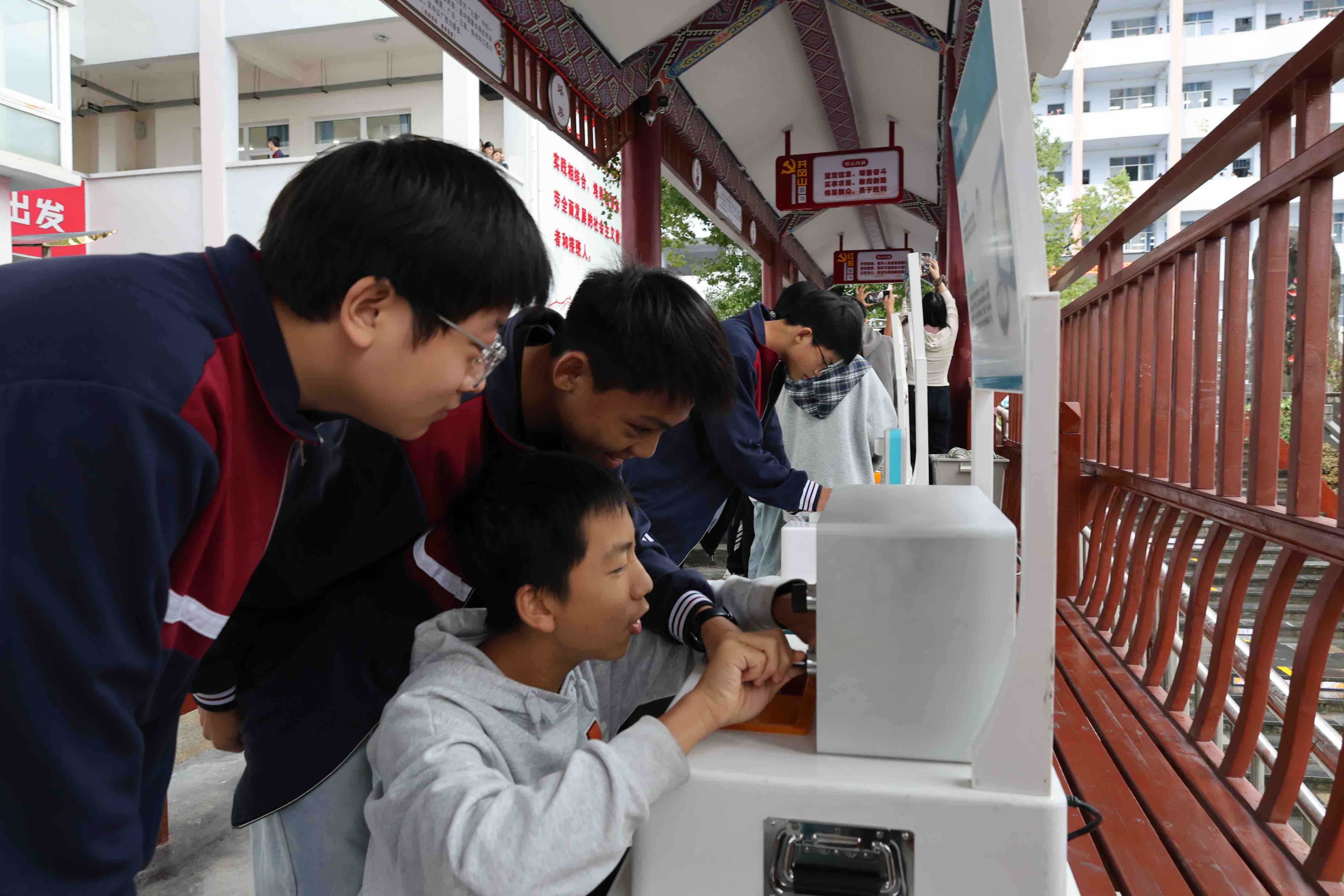 “哇,原來微波爐熱飯菜,是運用微波使食物中的水分子等極性分子產生劇烈碰撞,從而產生熱量,實現為食物加熱的功能的。好神奇!”10月14日上午,在黔江區人民中學文化長廊,一名學生在一件科普展品前恍然大悟,他的驚嘆聲引起了周圍同學的共鳴。這一天,滿載著奇趣科學展品的“科普大篷車”開進校園,為學生們帶來了一場持續全天的科技盛宴,讓同學們在親手操作、親身感知中,點燃了對科學的無限熱情。
