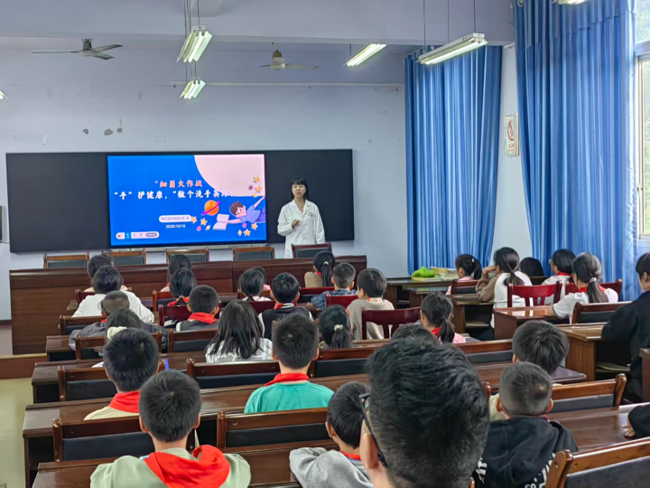 科普隊員們用淺顯生動的語言,向孩子們解釋了細菌與病毒的傳播特性,打破了“看不見即不存在”的認知誤區(qū)。隨后播放的洗手主題動畫片,以其鮮明的色彩和有趣的劇情,深深吸引了在場學生的目光。在最受歡迎的互動實踐環(huán)節(jié),隊員們帶領(lǐng)孩子們一起跳起了“七步洗手操”,并逐一糾正動作,確保每一位小朋友都能在輕松愉快的氛圍中真正掌握正確的洗手方法。