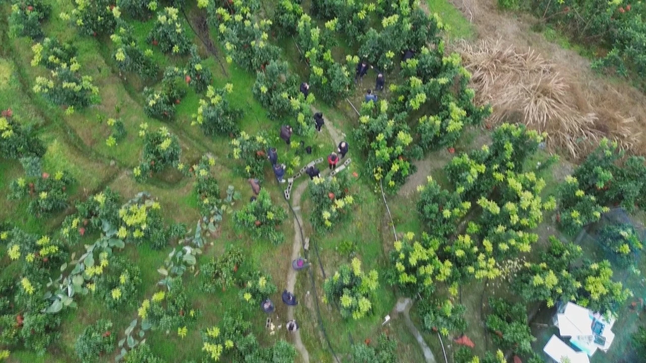 柚子林旁,是一大片臍橙園,一個個沉甸甸、黃澄澄的果子掩映在綠葉中 ,猶如一盞盞紅燈籠隨風搖曳,十分惹人喜愛。城區聞香而來的游客穿梭在果林間,忙著采摘成熟的柚子、臍橙,體驗近郊采果帶來的愜意。